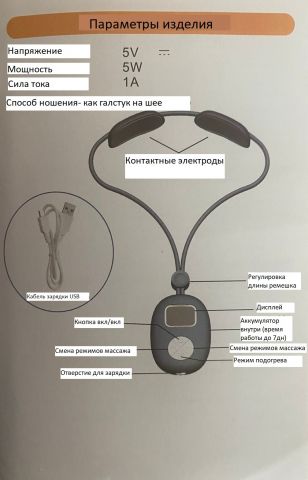 Магнитно-Акупунктурный Массажер электроимпульсного и теплового воздействия,для шеи и воротниковой зоны, с usb зарядкой