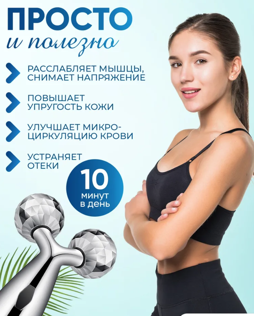 Массажер 3 D, для лица и тела, лимфодренажный роликовый
