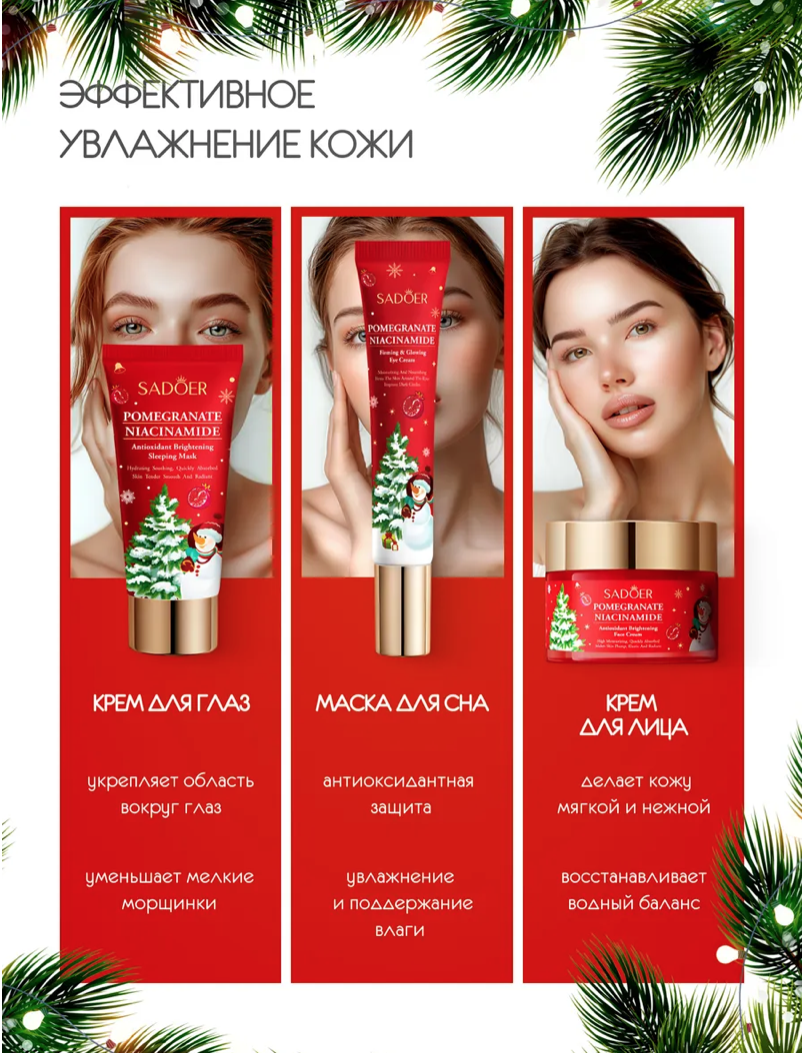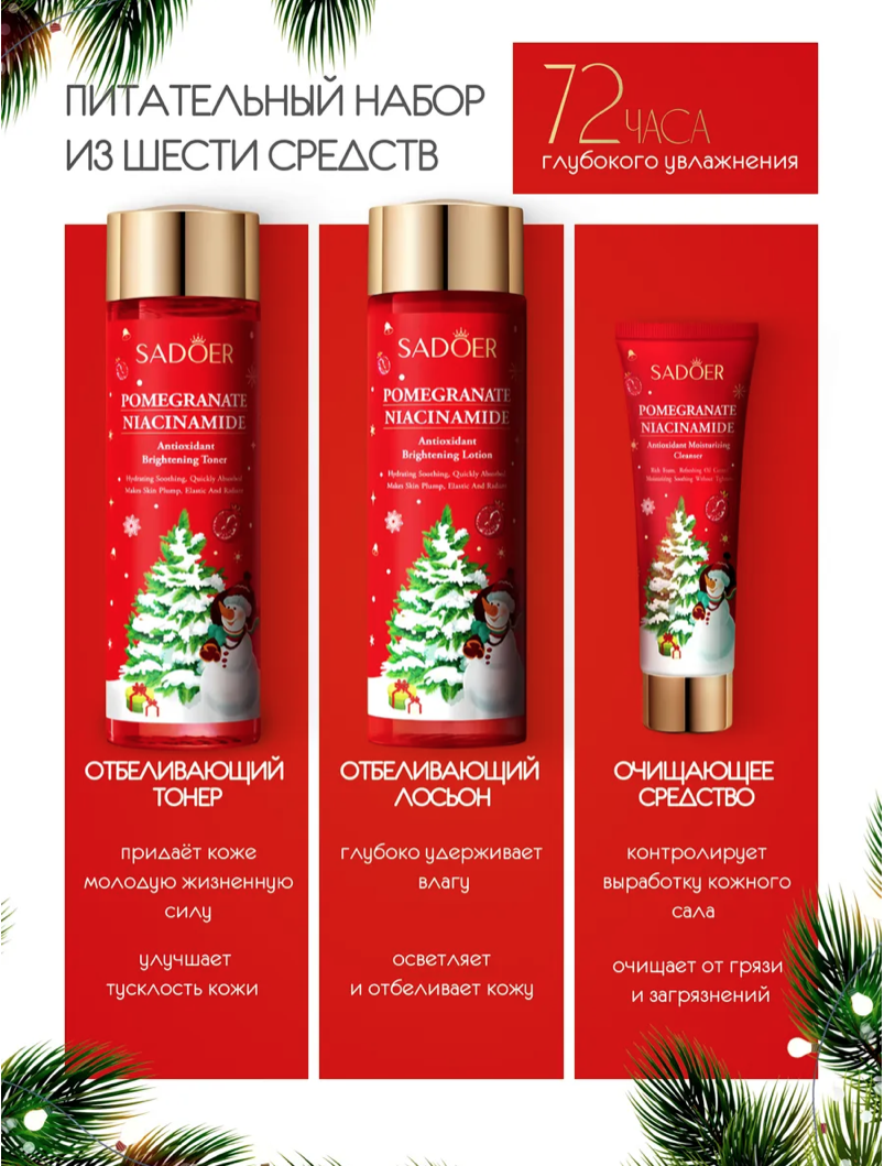 Подарочный набор косметики Sadoer Christmas “6 в 1” Pomegranate с экстрактом Граната, Никотинамид